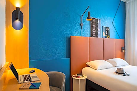 The ibis Paris Ornano Montmartre Nord 18ème is located in the famous Montmartre district, 394 feet from Porte de Clignancourt Metro Station, which provides direct access into central Paris. The Sacré Coeur Basilica is a 15-minute walk away and there is a 24-hour bar and a terrace overlooking the inner courtyard. The simple roomsare air-conditioned at ibis Ornano Montmartre Nord 18ème and offer satellite TV and Wi-Fi access. Each has a private bathroom with a shower and all rooms are serviced by a elevator. A buffet breakfast composed of sweet and savory dishes such as eggs, fruit salad, yogurts and juices is served every day. Pastries baked on site and fresh French Madeleine cakes are also on offer, as well as a hot beverage and a piece of fruit to take away. Outside of regular breakfast hours guests can also enjoy a lighter option, available from 04:00. The ibis Ornano Montmartre Nord 18ème is a 10-minute walk from the largest antique market in France, Les Puces de Saint-Ouen. Charles de Gaulle Airport is 25 minutes away, Villepointe Exhibition Center is a 30-minute drive away, Stade de France is a 15-minute drive away and the Paris ring road is a 2-minute drive from the hotel. Les Docks de Paris Event Venue are 1.4 mi away.