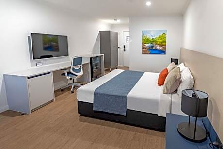 Comfortable Accommodations: Best Western Cambridge Hotel Kununurra in Kununurra offers air-conditioned rooms with free WiFi, work desks, and modern amenities. Each room includes a microwave and interconnected options. Exceptional Facilities: Guests enjoy a year-round outdoor swimming pool, lush garden, and free WiFi in public areas. The hotel provides a free airport shuttle service, outdoor seating, bicycle parking, and luggage storage. Dining Experience: The modern restaurant serves Australian cuisine for dinner, complemented by a continental breakfast. Outdoor seating areas enhance the dining experience. Convenient Location: Located 3 km from East Kimberley Regional Airport and 5 km from Diversion Dam, the hotel offers easy access to local attractions.