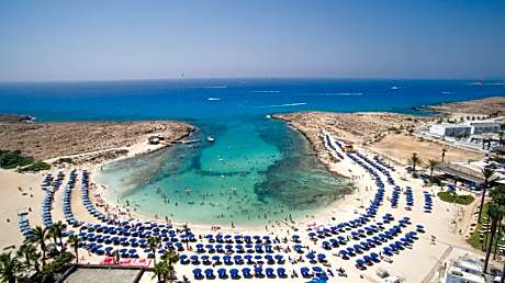 Enjoy a break on the white sands and clear waters of Ayia Napa with a stay at this modern holiday hotel, set beside Sandy Bay on the island of Cyprus. Surrounded by tropical palm trees, the Anonymous Beach Hotel features its own outdoor swimming pool bathed in Mediterranean sunshine. There is also an a la carte restaurant where you can enjoy the regular entertainment and themed evenings. Guests can start their day with a buffet breakfast, while certified Cypriot breakfast can also be enjoyed on Tuesday and Friday. Then choose from the à la carte lunch selection and themed evening buffets beneath the stars. The hotel is located in front of sandy bay. Here you can simply relax or try out the range of exciting water sports on offer.