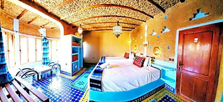 AUBERGE KSAR MERZOUGA in Merzouga features 4-star accommodations with an outdoor swimming pool, a garden and a bar. Among the various facilities of this property are ski-to-door access and a ski pass sales point. The property provides a 24-hour front desk, airport transportation, room service and free WiFi. A buffet breakfast is available at the hotel. At AUBERGE KSAR MERZOUGA you'll find a restaurant serving African cuisine. Vegetarian, halal and vegan options can also be requested. The area is popular for skiing, and ski equipment rental is available at the accommodation. Moulay Ali Cherif Airport is 71 miles away.
