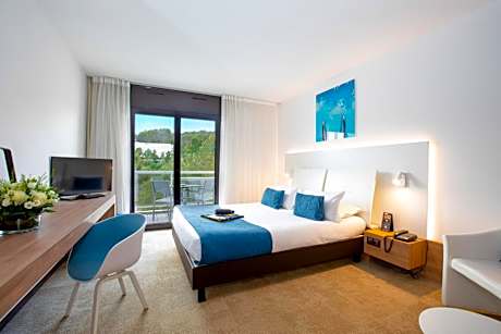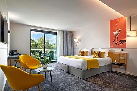 Mouratoglou Hotel & Resort is set in a 13-hectare landscaped garden featuring 2 swimming pools and 34 tennis courts. The property is a 20-minute drive from both Cannes city center and Nice Côte d'Azur Airport. The air-conditioned guest rooms are elegantly decorated. Each room is equipped with a flat-screen TV with satellite channels, a mini-bar and an electric kettle. All rooms have a private bathroom with a hairdryer and amenities. Mouratoglou Hotel & Resort features a bar and a deluxe brasserie. Breakfast is served every morning and children benefit from a reduced breakfast price. Free access to the SPA (sauna, hammam and tropical shower). Free access to the gym only for hotel guests. In addition: tennis court, yoga, aquabike, pilates... (Paying fitness classes upon reservation and subject to availability). A free shuttle service is available to transport hotel guests to company offices in Sophia Antipolis only.