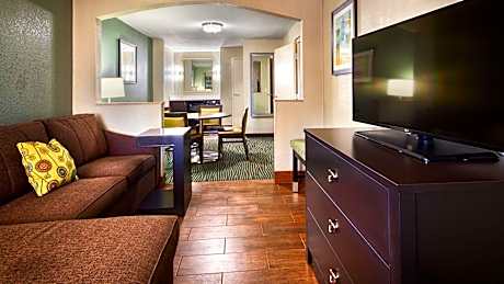 Best Western Executive Suites is located in Columbus, 25 miles from Davis Wade Stadium. This 3-star hotel offers free WiFi. The hotel has an indoor pool, fitness center and a 24-hour front desk. At the hotel, rooms have a desk. The rooms will provide guests with a fridge. A buffet breakfast is available at Best Western Executive Suites. A business center and vending machines with snacks and drinks are available on site at the accommodation. Golden Triangle Regional Airport is 12 miles from the property.