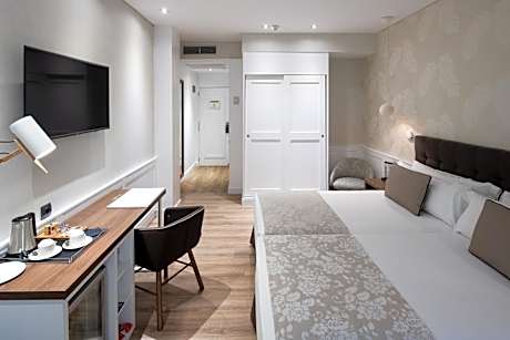 Catalonia Puerta del Sol is set in a magnificent 18th-century building in the historic center of Madrid, a few minutes from Puerta del Sol. It offers free Wi-Fi throughout the hotel. The hotel is just 164 feet from Puerta del Sol, Madrid's main square and from main tapas restaurants. You can walk to Madrid's famous Art Triangle in 15 minutes. Atocha Train Station is 0.6 mi away. The air-conditioned rooms feature parquet floors and smart décor. ach one has flat-screen satellite smart TV with Chromecast app, a private bathroom and a mini-bar. The Puerta del Sol's restaurant serves a buffet breakfast each morning, and available until 12:00 at weekends. There is also a bar with a roofed terrace, El Patio, where you can get a snack or a drink. There is also a patio with crystal domes. All hotel rooms have smart TVs, which are equipped with Chromecast app.