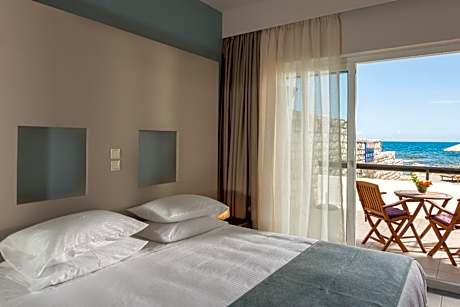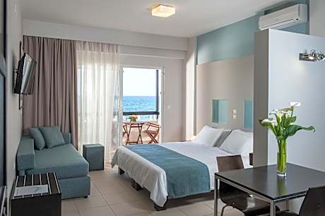 Located on the famous beach of Kalamaki, just 3 miles west of Chania and the charming Venetian Harbor, Corinna Mare is built on a peninsula which overlooks the island of Theodorou. The recently renovated Corinna Mare offers rooms with spacious balconies, most with a view of the sea,. Each is equipped with modern comforts and amenities such as air conditioning, telephone, TV, safe. Also available are disabled-friendly rooms. While the central beach is just 55 yards from Corinna Mare, a small private beach is right at the edge of the pool. Three local villages (Galatas, Daratsos, and Stalos) spread out within a one mile radius, giving the guest a taste of the island. License Number(s): 1042K032A0138400