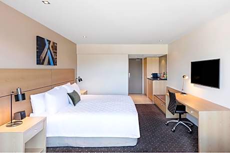 The Crowne Plaza Queenstown is centrally located, being only a short walk to Queenstown’s main streets and a 4-minute walk to the beach. With views overlooking Lake Wakatipu and Queenstown’s Remarkable mountain range, you can enjoy the Queenstown’s beautiful scenery right from the doorstep of the hotel. All rooms at the Crowne Plaza Queenstown have a balcony offering either a courtyard, mountain or lakeside view. The rooms are contemporary designed to provide comfort, with seating areas, dedicated desk and work space, flat-screen satellite TV, and complimentary WiFi. With an on-site restaurant and bar, you can dine in the lobby restaurant, threesixty, in the comfort of the hotel. Enjoy international cuisine while soaking up the views of Lake Wakatipu or sit back and enjoy a locally renowned Central Otago Pinot Noir in the lounge and bar area. The Sleep Advantage program helps to ensure guests get a good night’s sleep with aromatherapy kits, premium bedding, and a guaranteed wake-up call on request. Guests can enjoy the fully equipped hotel fitness center. There is complimentary, secure heated storage for skis, boards, and snow gear. During the summer months, guests can relax and enjoy a drink and live performances in the outdoor courtyard every Friday and Saturday. Valet car parking services are available for guests at an additional charge.
