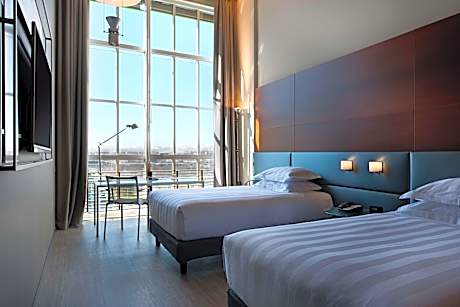 DoubleTree by Hilton Turin Lingotto is located inside the iconic Lingotto complex, now a modern shopping and cultural hub. The hotel is just 1969 feet from Lingotto Metro Station and 1969 feet from Spezia Metro Station, and offers free parking for guests. Once an historic car factory, the building was redesigned by architect Renzo Piano, featuring a bright central hall illuminated by a striking glass roof. The hotel’s café and restaurant serve contemporary cuisine in a stylish and unique setting. Rooms are modern, spacious and filled with natural light thanks to their floor-to-ceiling windows. Each room includes an LCD TV, allergy-free materials, and a bathroom equipped with a multi-sensory shower. Upon arrival, guests are welcomed with the signature DoubleTree chocolate chip cookie, a warm and special way to start your stay. License Number(s): 001272-ALB-00156, IT
