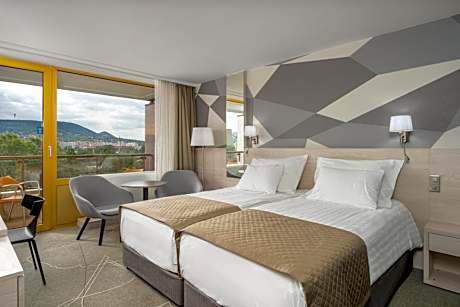 Uniquely located on the quiet and green Margaret Island in the heart of Budapest, the modern Ensana Thermal Margaret Island offers free use of its large spa area, an indoor and an outdoor pool, and free WiFi access. The spa area includes a thermal pool, a recreational pool, a 56 ft long swimming pool, a seasonal outdoor pool, various types of saunas and a steam room, which guarantee that you have a pleasant time. The medical center offers complex, personalized treatments lasting from a few days to several weeks for people suffering from joint, back, lumbar and neck pain, stress-related conditions and weight problems. The therapies are combined with the beneficial effects of thermal water from Margaret Island and medicinal mud from Hévíz. In the Platán restaurant with its terrace, you can enjoy gourmet and light cuisine together with magnificent views of the park. The Boróka Bar with a terrace and the Neptun bar at the swimming pool are inviting places to relax. All rooms are air-conditioned and have a balcony. A work desk, satellite TV and bathrobes are also provided. License Number(s): SZ22051354