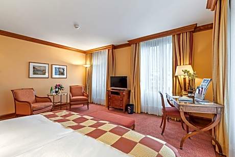 Featuring a terrace, a restaurant as well as a bar, Grand Hotel Zermatterhof is located in the center of Zermatt, a 6-minute walk from Zermatt Train Station. Each room at the 5-star hotel has city views, and guests can enjoy access to a hot tub and a hammam. Guests can use the spa and wellness center with an indoor pool, fitness center, and sauna, as well as a garden. At the hotel every room includes a seating area, a flat-screen TV with satellite channels, a safety deposit box and a private bathroom with a shower, free toiletries and a hairdryer. Every room comes with a coffee machine, while certain rooms here will provide you with a balcony and others also provide guests with mountain views. All guest rooms will provide guests with a desk and an electric tea pot. The breakfast offers buffet, continental or American options. Guests at Grand Hotel Zermatterhof will be able to enjoy activities in and around Zermatt, like hiking, skiing and cycling. With staff speaking German, English and French, around-the-clock information is available at the reception. Matterhorn Museum is a few steps from the accommodation, while Gorner Ridge is 8.6 miles away.