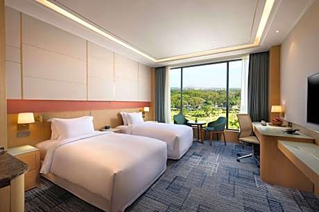 Hilton Clark Sun Valley Resort offers top-notch services and amenities, ensuring guests experience utmost comfort. Share your photos and respond to emails at your convenience, thanks to the free Wi-Fi internet access offered by hotel.Should you require transportation to or from the airport, hotel is able to organize it prior to your arrival date.Services offered by car hire and shuttle at the hotel ensure effortless exploration of Mabalacat. Visitors can take advantage of complimentary parking directly at the hotel. Reception services such as concierge service, luggage storage and safety deposit boxes are available to accommodate your requirements.Should you desire access to the top entertainment in the city, assistance can be provided by the hotel's tours.Traveling with minimal luggage is achievable at Hilton Clark Sun Valley Resort due to the hotel's laundry service ensuring your garments stay fresh. Room amenities like 24-hour room service, room service and daily housekeeping contribute to making a perfect selection for your stay.The hotel maintains a completely smoke-free zone, providing a breathable atmosphere. Each accommodation at Hilton Clark Sun Valley Resort is thoughtfully created and adorned to provide visitors with a comfortable, home-like atmosphere. In select rooms of the hotel, guests can enjoy the advantage of having blackout curtains available for their convenience. At Hilton Clark Sun Valley Resort, the uniquely tailored rooms provide a configuration choice resembling a balcony or terrace. In select rooms, guests at the hotel can enjoy top-notch in-room entertainment with daily newspaper, television, in-room video streaming and cable TV available for their convenience. Rest assured, in a few chosen rooms, you will find the convenience of instant tea and mini bar at your disposal. Maintain your cleanliness and comfort using a hair dryer, toiletries and bathrobes available in select guest restrooms. Embark on your holiday experience in the most ideal manner. Commence each morning of your visit with an on-site breakfast. Experience the delight of a fresh morning by savoring excellent coffee at the cafe situated within hotel.Should you prefer not to venture out for a meal, the enticing culinary choices at hotel are always available for your satisfaction.Experience an unforgettable evening with your fellow travelers just a short distance away, at hotel's bar. Indulge in the numerous pursuits available at Hilton Clark Sun Valley Resort. Unwind after your day by exploring the spa and find warmth and relaxation.Each day at hotel, immerse yourself in the invigorating waters of the pool, perfect for a rejuvenating plunge or a series of revitalizing laps.For individuals who don't want to skip their exercise routine, visiting the hotel fitness center ensures you maintain your vitality and wellness.