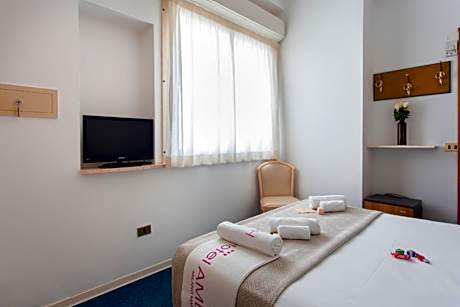 Facing the beachfront, HOTEL AMBRA - Fronte Mare - Vicinissimi al Centro offers 3-star accommodations in Milano Marittima and has a fitness center, garden and shared lounge. Offering a bar, the property is located within a few steps of Paparazzi Beach 242. This pet-friendly hotel also has free WiFi. The hotel will provide guests with air-conditioned rooms offering a desk, a safety deposit box, a flat-screen TV and a private bathroom with a bidet. A buffet, continental or Italian breakfast is served at the property. At HOTEL AMBRA - Fronte Mare - Vicinissimi al Centro you'll find a restaurant serving Italian, Mediterranean and Local cuisine. Vegetarian, dairy-free and vegan options can also be requested. Speaking English and Italian, staff are ready to help around the clock at the reception. Cervia Station is 1.6 miles from the accommodation, while Cervia Thermal Bath is 2.2 miles from the property. License Number(s): 039007-AL-00400, IT0