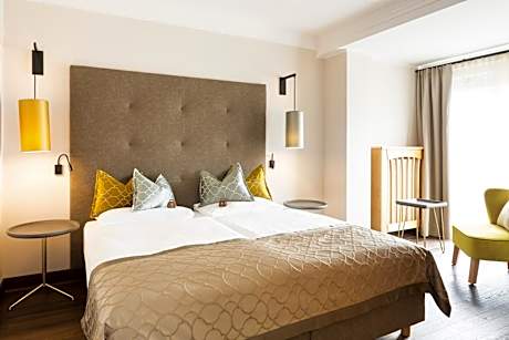 With a balcony overlooking Meran, this room with attached bathroom features a flat-screen TV, safe and small fridge.