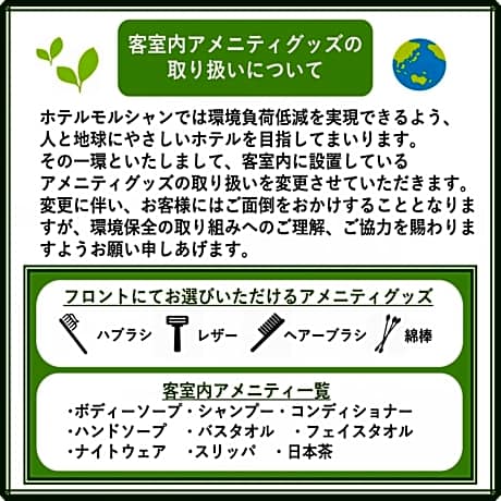 Just a 2-minute walk from JR Matsumoto Train Station, Hotel Morschein serves a Western- and Japanese-style breakfast buffet for a fee and has free-use bicycles and a coin launderette. Free WiFi is available throughout the property. Parking space is available off site on a first-come-first-served basis. Motorbikes cannot be parked. Decorated in a simple modern style, each room at Morschein Hotel has a wood desk, an LCD TV, a mini-fridge and a trouser press. Slippers, toothbrushes and a hairdryer are provided in the private bathroom. The hotel is a 15-minute walk from Matsumoto castle and a 10-minute walk from the Nawate Shopping District. The Nakamachi Shopping District is also a 10-minute walk away. A 30-minute drive will take guests to the Azumino area, which features views of the Northern Japanese Alps. Kamikochi, Kurobe Dam, and Takayama City are all around a 2-hour train ride away. Luggage can be left at the front desk, which also arranges for a surcharge both dry cleaning and fax and photocopying services. A microwave and an ice maker are available free of charge on the 2nd floor. The breakfast buffet is served at Coffee & Restaurant Maie from 07:00-09:00, and features a daily soup. Lunch and dinner are not available.