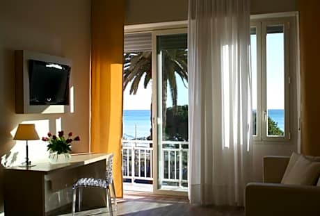Offering free toiletries, this triple room includes a private bathroom with a walk-in shower, a bath and a bidet. The air-conditioned triple room offers a flat-screen TV with cable channels, a wardrobe, a safe deposit box, a sofa as well as sea views. The unit has 2 beds.