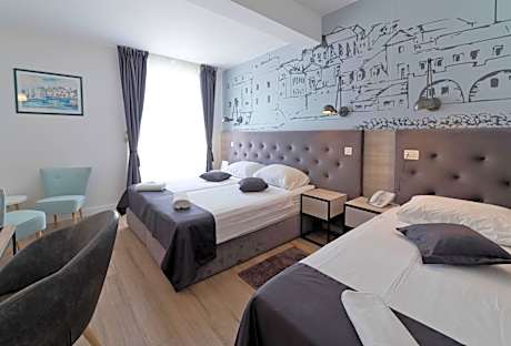 The Hotel Perla is situated in the beautiful Lapad bay of Dubrovnik, 1.8 miles from the historic old town, which is easily accessible by local buses. The Perla hotel is on the city promenade, which sas many charming bars and cafes, and leads to the great gravel beach, which is only 110 yards away. The restaurant Agora with its terrace offers a rich choice of local cuisine and is the perfect romantic place to dine on those warm evenings. You can start every day at the rich and complimentary breakfast buffet. Only 110 yards away from the Perla hotel there are parking spaces, a bank, a post office, a pharmacy, a shopping center, a bus stop and a taxi stand. Guests rooms are spacious and air-conditioned and feature a balcony. Wired internet is available in all rooms free of charge. License Number(s): 06194336416