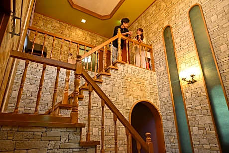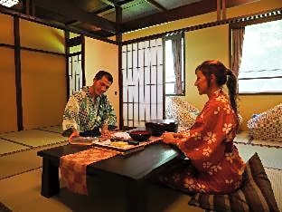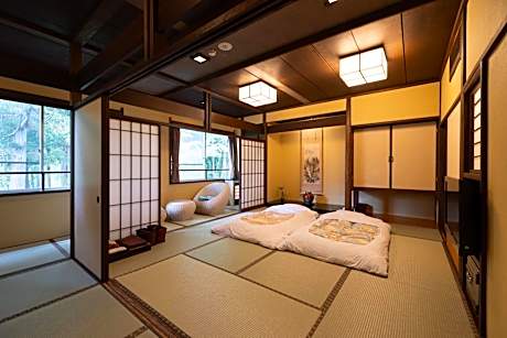 The quadruple room provides a safe deposit box, pajamas, as well as a shared bathroom boasting a bidet and slippers. The air-conditioned quadruple room offers a flat-screen TV, tatami, a tea and coffee maker, a wardrobe as well as garden views. The unit has 4 futons.