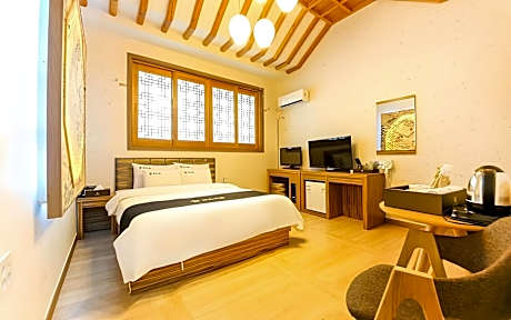 At Hanok Hotel Kung, exceptional service and top-notch amenities create a memorable experience for guests. Complimentary internet access is available in the motel to ensure you stay connected during your visit. Amenities at taxi offered by Hanok Hotel Kung simplify the organization of your excursions, tourist activities, and other adventures in Jeonju-si. Complimentary parking is available for guests.Continuously receive the support you require through front desk amenities such as concierge service and luggage storage.Desire to unwind? Make the most of your visit at Hanok Hotel Kung with accessible amenities such as daily housekeeping.Due to health concerns, smoking is strictly prohibited within the entire premises of motel.Accommodations come equipped with all the conveniences required for a restful night's slumber.A selection of rooms at Hanok Hotel Kung come furnished with air conditioning to cater to your needs and comfort. A number of rooms feature television for guest amusement and enjoyment. In certain rooms, the motel offers visitors access to a refrigerator, bottled water, a coffee or tea maker and instant tea. Hanok Hotel Kung offers a hair dryer, toiletries and bathrobes in the restrooms of specific accommodations. A delightful breakfast is the perfect way to begin your day, and at Hanok Hotel Kung, you can always indulge in a scrumptious meal on-site.