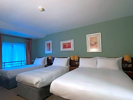 The quadruple room features a private bathroom equipped with a shower and a hairdryer. Rooms on the upper floors are reachable by elevator.