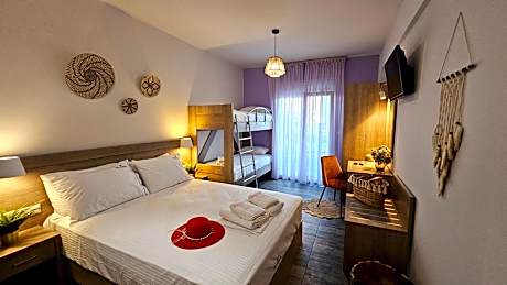 Offering inner courtyard views, Niriides boutique suites in Nea Vrasna features accommodations, a garden, and barbecue facilities. Guests staying at this condo hotel have access to a fully equipped kitchen and a patio. The condo hotel also offers free Wifi, free private parking, and facilities for disabled guests. The condo hotel will provide guests with air-conditioned units with a wardrobe, a coffee machine, a fridge, a stovetop, a safety deposit box, a flat-screen TV, a terrace, and a private bathroom with a a bath or shower. A balcony with outdoor furniture and garden views is offered in each unit. The rooms are equipped with heating facilities. Nea Vrasna Beach is a 5-minute walk from the condo hotel. Thessaloniki Airport is 60 miles from the property.
