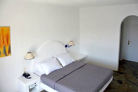 Cycladic-style room with air conditioning, satellite TV, mini fridge and hairdryer. It offers views of the pool and the Aegean Sea.