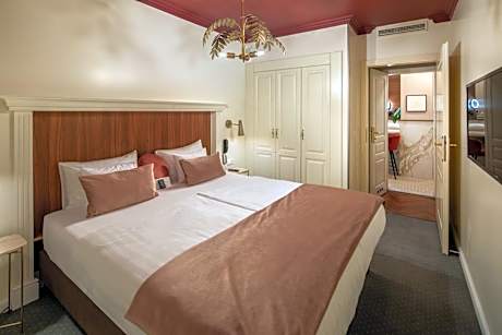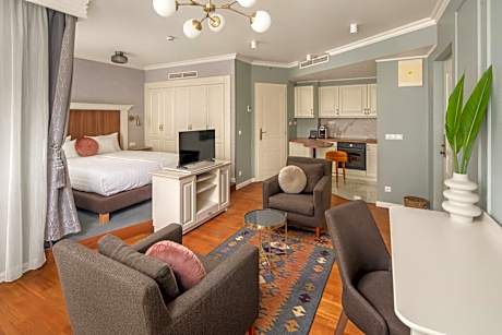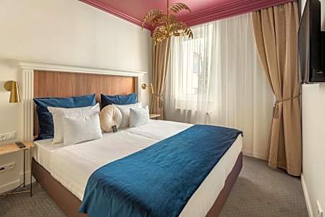 The Queen’s Court Hotel & Residence is ideally located in the heart of Budapest and it features an enchanting and tranquil spa area with indoor pool (26 ft*14 ft) and a hot tub. A quiet garden in the courtyard invites all guests to relax. Free WiFi is available in the entire hotel. The Queen’s Court provides spacious, individually designed suites with balconies, air conditioning and kitchenettes. Some also have a spacious living room and a dining area. The in-house Chess Restaurant & Bar serves international cuisine and fine wines. The Blaha Lujza tér M2 Metro Station is 2133 feet from the property, while the Deák Ferenc tér hub, as well as the St.Stephen's Basilica can be reached within a 10-minute walk from the hotel. Private parking is possible on site. License Number(s): SZ19000558