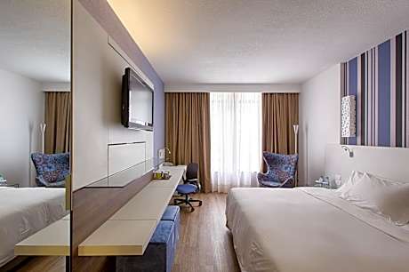 Radisson Hotel is located in the trendy Batel area, facing Japan Square and 1.2 mi from the lively November 15th Pedestrian Street. It features a small indoor pool, a fitness center, sauna and massage facilities. The air-conditioned rooms of the Radisson Hotel Curitiba present a contemporary décor and are fitted with a Smart flat-screen TV with WiFi connection, Netflix and YouTube access. A mini-bar, a work desk and a wardrobe are offered as well. Extras include a digital safe, a telephone and an electrical kettle.The private bathroom is equipped with a shower and a hairdryer. Some rooms also include a spa bath. Guests benefit from a bottle of water,coffee and tea sachets as courtesy. Guests can enjoy a variety of international and regional dishes served at the Origens restaurant. A selection of drinks and spirits is offered at the airy lobby bar. Other facilities of the Radisson Curitiba include a well-equipped gym, room service and 24-hour reception. The popular Wire Opera House is a 15-minute drive away and Afonso Pena International Airport is 11 mi southeast from the hotel.