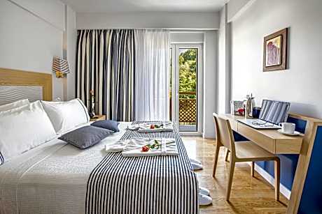Offering a pool and a bar-restaurant, Skiathos Mystery features elegant, air-conditioned accommodations with furnished balcony overlooking Skiathos Town and the pool. Free WiFi access is available throughout. Papadiamantis' House is 1969 feet away. Featuring minimalist modern interiors, navy-colored tones and Simmons beds, all suites of Mystery come with 1 or 2 separate bedrooms and a seating area with SMART satellite TV. Each has a mini-bar and a marble bathroom with a hairdryer and bathrobes. Guests can take a refreshing dip at the outdoor pool or enjoy Mediterranean dishes, light meals and refreshing beverages at the on-site bar-restaurant. Several shops can be reached within a short walk. Skiathos' Port is 2133 feet away and Skiathos Airport is at a distance of 0.6 mi. The property offers free private parking. License Number(s): 0756Κ134Κ0451401