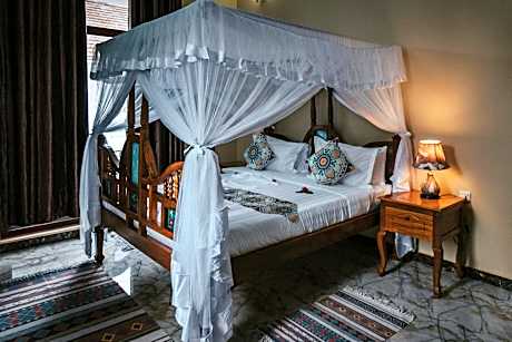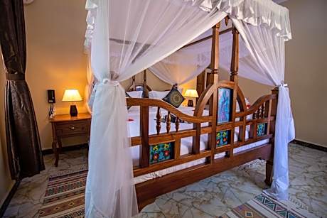 Located in Uroa, a few steps from Uroa Public Beach, Sunny Palms Beach Bungalows provides accommodations with an outdoor swimming pool, free private parking, a fitness center and a garden. Among the various facilities of this property are a private beach area, a shared lounge and a terrace. The property has a 24-hour front desk, airport transportation, a kids' club and free WiFi. The hotel will provide guests with air-conditioned rooms offering a desk, an electric tea pot, a fridge, a minibar, a safety deposit box, a flat-screen TV, a balcony and a private bathroom with a shower. All guest rooms feature a closet. Breakfast is available, and includes buffet, à la carte and continental options. At Sunny Palms Beach Bungalows you'll find a restaurant serving African, American and Chinese cuisine. Vegetarian, dairy-free and halal options can also be requested. Spa and wellness facilities are at guests' disposal during their stay at the accommodation, including a hot tub and on-request massage treatments. You can play pool, table tennis and darts at this 4-star hotel, and the area is popular for cycling. Peace Memorial Museum is 24 miles from Sunny Palms Beach Bungalows, while Jozani Chwaka Bay National Park is 12 miles away. Abeid Amani Karume International Airport is 25 miles from the property.