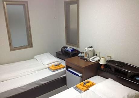 Features tatami (woven-straw) flooring and Japanese futon bedding. Equipped with air-conditioning, a Yukata (Japanese robe) and a TV. Bathrooms and toilets are shared.