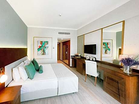 Boasting a blue-flag private beach along the Aegean coast, this 5-star resort in Çeşme features 7 outdoor pools, including one with thermal water, and a buffet restaurant with panoramic windows. The rooms at Ilica Hotel Spa & Wellness Resort are bright and come with flat-screen TV, free WiFi and a private balcony. Some rooms feature a hydro-massage tub and floor-to-ceiling windows overlooking Ilıca Bay. Guests can enjoy Thai and Bali massages at the spa, along with several body and skin treatments. Children can participate in the activities of the mini-club, enjoy the waterslides, or play in the games room. Kalama Restaurant offers Aegean flavors served in rich buffets. À la carte service is available at the Grill Bar, where international cuisine is on offer. The stylish cocktail bar has a spacious terrace with comfortable seating. Guests can also visit the aquapark right next to the resort, Çeşme Aqua Toy City, and enjoy the swimming pools with slides. Izmir Adnan Menderes Airport is 55 mi from the property. Airport shuttle can be arranged upon request for an additional fee.