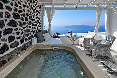 Featuring impressive views over the Caldera from guestrooms and public areas, Iliovasilema Suites is on the top of the cliff, 1.2 mi from Fira. It offers a pool and snack bar. Offering elegant and minimalist décor in modern Cycladic style, all accommodations types at the Iliovasilema have flat-screen satellite TVs, well-stocked mini-bars and air conditioning. Free Wi-Fi is offered in all units. Iliovasilema Suites’ bar area with views of the Aegean Sea is ideal for evening cocktails. Light dishes are served at the snack bar or through room service. Restaurants and bars are within a 3-minute walk. The hotel is 2625 ft from Skaros. Thira Airport is 5 mi away. Staff at the 24-hour front desk can arrange car rental.