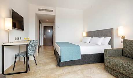 16 m2 room with access to terrace. It is equipped with an extra-large double bed of 0.7 in or two single beds of 35 in together. Additionally, we have at your disposal a 0.5 in sofa bed with capacity for one adult or two children under 11 years of age. The Hotel reserves the right to request documentation that proves the age of the children at check-in.