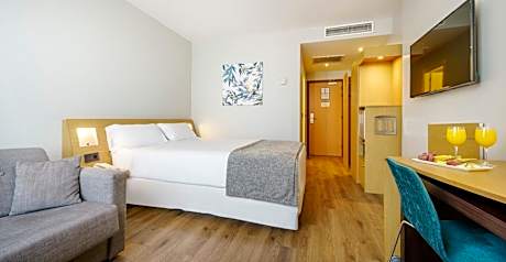 Featuring an outdoor swimming pool, and free WiFi throughout, Ilunion Valencia 4 is just 2625 feet from Valencia’s Palacio de Congresos and a 3-minute walk from Beniferri Metro Stop. Rooms are decorated with warm colors and provide an integrated seating area, air conditioning, and a flat-screen TV with satellite channels. They also include a sofa, a fridge and a safe. The private bathroom includes a hairdryer and complimentary toiletries. Some of them provide stunning city views. The Ilunion Valencia 4 serves a daily breakfast and offers à- la-carte dishes. Guests can enjoy relax in the seasonal swimming pool. Private parking is available for an extra cost. This hotel is officially adapted for guests with reduced mobility, accessible rooms are available on request, also for people with auditory and visual impairment. Guests will find a shopping center and a range of restaurants within a 15-minute walk of Ilunion Valencia 4. Valencia’s Historic Center is 1.9 mi from the property, and Malvarrosa Beach is 15 minutes' drive away. Valencia Airport is a 40-minute metro ride away. Supplements per night apply. Guests should contact the hotel to check and confirm availability of room for a reservation with pet. Hotel will check there's availability and that room complies with specifications needed. Pets are only allowed in "Pet Friendly Double room" room type. Pets are not allowed in the other types of rooms. Once in the establishment, guests will receive the access regulations, which they must read and approve.” Parking is reserved upon arrival at the hotel and always subject to availability.