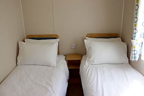 Boasting a private entrance, this mobile home also features 1 living room, 2 separate bedrooms and 2 bathrooms with a shower. The fully equipped kitchen has a stovetop, a refrigerator, kitchenware and an oven. The mobile home features carpeted floors, a seating area with a flat-screen TV, a dining area, a wardrobe, as well as an electric kettle. The unit has 3 beds.