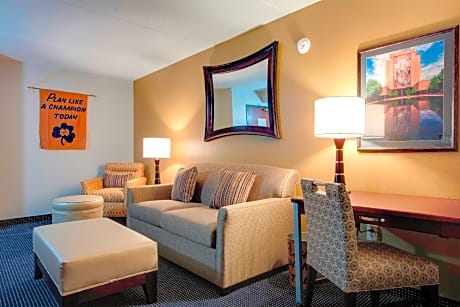 This cozy inn features an extensive gym, free WiFi and rooms with a flat-screen TV. It is located on the Saint Mary’s College campus, adjacent to the University of Noter Dame. The elegant rooms are decorated in soft neutral colors. Each room offers a coffee maker and work desk. A comfortable seating area is also provided. Guests can relax in the sauna. The Inn at Saint Mary's offers free airport transportation to/from South Bend Regional Airport, 6 miles away. Inn at the Inn at Saint Mary's serves a hot breakfast buffet every morning and cocktails in The Exhale Lounge in the evening. The Potawatomi Zoo is 10 minutes away by car and Noter Dame Stadium is 2.3 miles away.