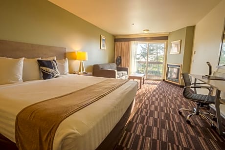 This room features a fireplace, mini-refrigerator, microwave, and coffee machine. A cable HDTV, DVD player, sofa bed, and private bathroom with a bath/shower combo and free toiletries are also included.