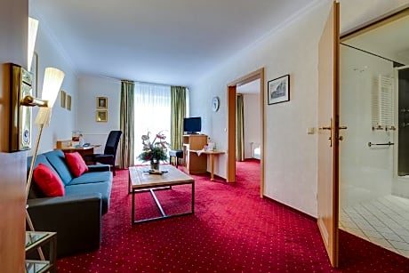 This large room includes flat-screen satellite TV, a seating area, and has an private bathroom with a hairdryer and complimentary toiletries.