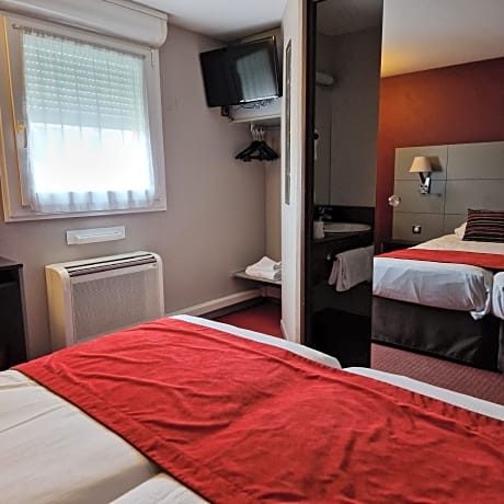 The KYRIAD DIRECT Limoges Nord is a very comfortable office hotel**, with a always very warm and friendly welcome to make your stay as pleasant as possible. Easily accessible from the A20, exit 29 coming from Paris or exit 28, coming from Toulouse, it is located 15 minutes by car from the heart of the city of Limoges. (Cathedral district, Benedictins Station, Central Hall, Museums, all shops, etc.) Make your choice between "Standard", "Superior" or "suite" rooms, sleeping 1 to 5 people. Each room is equipped with quality bedding, a private shower room with toilet, a hairdryer, a flat-screen TV, individual reversible air conditioning, a Bluetooth speaker and very high speed wifi. Its double open-air parking lot is secured by video surveillance. Numerous restaurants, within walking distance, offer traditional or themed cuisine, depending on your preferences.