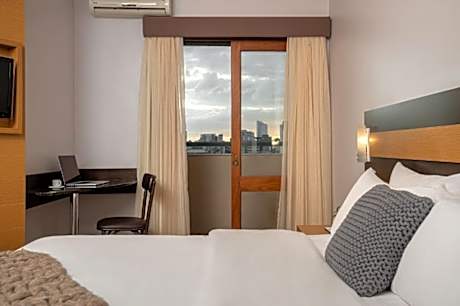 A stay at Piazza Navona Porto Alegre by Intercity places you in the heart of Porto Alegre, within a 10-minute walk of Museum of Medical History of Rio Grande do Sul and Farroupilha Park. This 4-star hotel is 0.6 mi (1 km) from Moinhos de Vento Hospital and 1.1 mi (1.8 km) from HCPA - Hospital de Clínicas de Porto Alegre. Make yourself at home in one of the 62 guestrooms featuring microwaves and minibars. Rooms have private balconies. 26-inch LCD televisions with cable programming provide entertainment, while complimentary wireless Internet access keeps you connected. Private bathrooms with showers feature rainfall showerheads and complimentary toiletries. Take advantage of recreational opportunities offered, including an indoor pool, a sauna, and a 24-hour fitness center. Additional features at this hotel include complimentary wireless Internet access and concierge services. Stop by the hotel's restaurant, Darquez Rooftop, for lunch or dinner. Dining is also available at the coffee shop/cafe, and room service (during limited hours) is provided. Quench your thirst with your favorite drink at the bar/lounge. Buffet breakfasts are served on weekdays from 7:00 AM to 10:00 AM and on weekends from 7:00 AM to 10:30 AM for a fee. Featured amenities include a 24-hour business center, complimentary newspapers in the lobby, and dry cleaning/laundry services. Planning an event in Porto Alegre? This hotel has 97 square feet (9 square meters) of space consisting of conference space and a meeting room. Self parking (subject to charges) is available onsite.