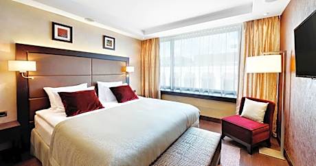 The hotel boasts elegantly furnished rooms and suites with sleek interior designs. Select accommodations offer breathtaking views of the Danube River and the castle, providing a scenic backdrop to a luxurious stay. Each room is designed to offer comfort and style, ensuring a memorable experience for all guests.
