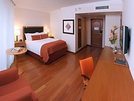 Hotel Intercontinental offers pleasant gold and peach rooms with free WiFi in downtown Cali, 7.5 mi from Alfonso Bonilla Aragón Airport. Facilities include a pool and health club. The floodlit rooms at Intercontinental Cali have wood floors. All are equipped with air conditioning, cable TV and have queen-size beds. La Terraza Restaurant offers casual dining, while the Fogón de Piedra serves delicious hot stone barbecues. There are pizzas and fresh pasta in La Pizzeria, while La Brasserie serves breakfast buffet daily. Additional guest facilities at Hotel Intercontinental Cali include free parking and a business center. If traveling with your child under eighteen (18) years old, you must present the minor’s ID and the document that corroborates the kinship in first degree of consanguinity (biological father - child) or first degree of civil kinship (adoptive father - adopted son). If the minor does not travel in the company of his parents, it will be indispensable that the responsible adult delivers at the reception, in addition to the ID of the minor, the permission of the parents with personal presentation before a notary public, together with the copy of the identification document of those who gave the authorization. Without this documentation, minors will not be allowed in the hotel. This is in accordance with the law.