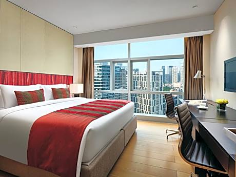 Grand ParcVue Hotel Residence Chengdu offers top-notch services and amenities, ensuring guests experience utmost comfort. Remain linked during your visit by utilizing the complimentary internet access available. Services offered by taxi and car hire at the hotel ensure effortless exploration of Chengdu. The hotel offers complimentary parking for guests who arrive with their own mode of transport. Effortlessly plan your daily activities and travel requirements with concierge service, express check-in or check-out, luggage storage and safety deposit boxes provided by the front desk services. Securing passes to the city's top attractions is simple with the hotel's ticket service and tours.For extended visits or whenever required, the laundromat, dry cleaning service and laundry service ensures your preferred travel garments remain clean and accessible.During leisurely days and evenings, in-room amenities such as room service and daily housekeeping enable you to maximize your stay in the room.Crafted for coziness, every guestroom provides an array of features, guaranteeing a tranquil night's sleep while maintaining the level of comfort.For a more enjoyable stay, select rooms at hotel are equipped with linen service, blackout curtains and air conditioning. At Grand ParcVue Hotel Residence Chengdu, guests can choose from a variety of room configurations, some of which feature separate living room and balcony or terrace.For certain chosen rooms, guests can enjoy in-room amusement like television and cable TV as a part of their stay.Rest assured that your hydration needs will be met, as some guestrooms are equipped with a refrigerator, a coffee or tea maker, bottled water, instant coffee and instant tea. It is worth noting that certain guest bathrooms feature a hair dryer, toiletries and bathrobes for your convenience. Each morning at Grand ParcVue Hotel Residence Chengdu, a scrumptious, homemade breakfast kick-starts the day.Grand ParcVue Hotel Residence Chengdu provides a superb assortment of leisure amenities for guests to enjoy.Treat and spoil yourself by stopping at steam room and sauna for a memorable experience.Begin your holiday perfectly by taking a plunge into the swimming pool. Eliminate those holiday calories by stopping by hotel and making use of their well-equipped exercise amenities.