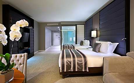 Set in front of the Atlantic Ocean, the luxurious 5-star Intercontinental Cascais-Estoril features an outdoor swimming pool, indoor pool and a fitness center. The property includes a restaurant and is 0.6 mi from Estoril Casino. The ample and modernly-equipped rooms at the Intercontinental Cascais-Estoril all feature air conditioning and a private bathroom, with either a bath or a shower. The elegant accommodations includes a flat-screen cable TV, mini-bar, safe and a coffee machine. Most feature panoramic views over the beach and the Atlantic Ocean. Guests of the Intercontinental Cascais-Estoril can have a taste of traditional Portuguese cooking at the hotel restaurant, including the famed Portuguese fish and seafood specialties. Various other restaurant options are available in the Estoril center, at a 3-minute drive. At the Intercontinental Cascais-Estoril there is a Spa & Wellness center, as well as a concierge service. Tamariz Beach is a 2-minute drive and here guests can enjoy swimming, sun lounging and a variety of water sports. Cascais is a 9-minute drive away. The Lisbon center is a 29-minute drive away and features renowned areas such as Chiado, Bairro Alto, Rossio and Belém. Portela International Airport is 19 mi away and the Intercontinental Cascais-Estoril is a 5-minute walk from Monte do Estoril Train Station.