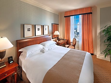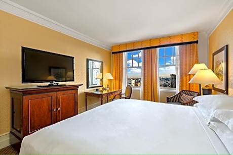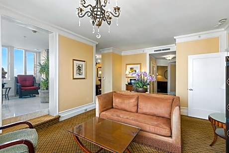 Located atop Nob Hill, the historic InterContinental Mark Hopkins San Francisco stands as a prestigious beacon offering majestic views of San Francisco and the Golden Gate Bridge. Step outside to find cable car stops ready to whisk you to the city’s charming sights. Modern and elegant, each room is equipped with a mini-bar, cable TV, and coffee maker, ensuring comfort with a touch of refinement. Guests are invited to the Top of the Mark sky lounge, where gourmet delicacies and a selection of over 100 different martinis await.