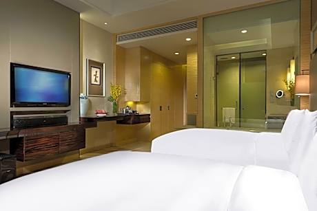 Great care is taken to ensure guests experience comfort through top-notch services and amenities. Remain linked during your visit by utilizing the complimentary internet access available. Prior to your check-in date, you can arrange airport transportation services, guaranteeing a seamless and efficient experience for both arrival and departure.Services offered by taxi and car hire at the hotel ensure effortless exploration of Tangshan.The hotel offers complimentary parking for guests who arrive with their own mode of transport. Effortlessly plan your daily activities and travel requirements with concierge service, express check-in or check-out, luggage storage and safety deposit boxes provided by the front desk services. For extended visits or whenever required, the dry cleaning service and laundry service ensures your preferred travel garments remain clean and accessible. During leisurely days and evenings, in-room amenities such as 24-hour room service, room service and daily housekeeping enable you to maximize your stay in the room. The hotel is completely smoke-free. In limited designated zones, smoking is exclusively permitted. Crafted for coziness, every guestroom provides an array of features, guaranteeing a tranquil night's sleep while maintaining the level of comfort.For a more enjoyable stay, select rooms at hotel are equipped with linen service, blackout curtains and air conditioning. At InterContinental Tangshan By IHG, a selection of rooms can be found that showcase unique design elements such as a separate living room. For certain chosen rooms, guests can enjoy in-room amusement like daily newspaper, television, in-room video streaming and cable TV as a part of their stay.Rest assured that your hydration needs will be met, as some guestrooms are equipped with a refrigerator, bottled water, a coffee or tea maker, instant coffee, instant tea and mini bar.It is worth noting that certain guest bathrooms feature a hair dryer, toiletries and bathrobes for your convenience.Chosen accommodation prices might include entry to the executive lounge, offering premium services amid an ambiance of refined extravagance. Each morning at InterContinental Tangshan By IHG, a scrumptious, homemade breakfast kick-starts the day.Begin your holiday mornings right with your essential cup of coffee, offered daily at the cafe on-site.During your visit, indulge in a range of delightful culinary choices at hotel to enhance your experience. Experience a fantastic evening effortlessly! Relish an entertaining night without venturing beyond the confines of the bar. Indulge in the numerous pursuits available at InterContinental Tangshan By IHG. Treat and spoil yourself by stopping at massage, hot tub and spa for a memorable experience. Begin your holiday perfectly by taking a plunge into the swimming pool.Eliminate those holiday calories by stopping by hotel and making use of their well-equipped exercise amenities.