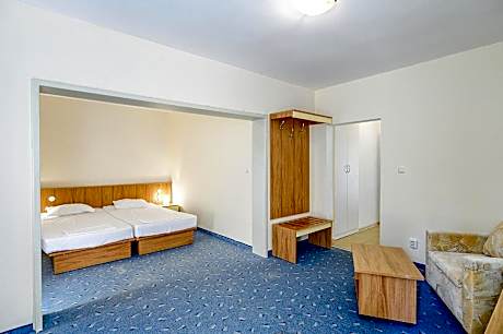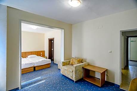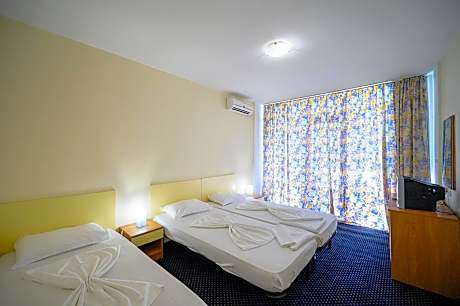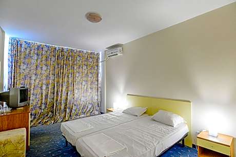 International House of Journalists Resort is set amid its own botanical garden, 328 feet from the large Kabakum beach in the peacefull Chaika area and 656 feet away from Cabacum beach. The 45 decares park is suitable for many sport activities, as well as for various recreational therapies. There is also a garden where organic vegetables are grown. On site there is an outdoor pool filled with mineral water, with sun loungers and parasols available free of charge. Free WiFi is available in all areas and free parking is offered. All rooms are equipped with air conditioning, mini-bar, TV set with satellite channels, telephone, balcony and a bathroom with a shower. On the ground floor of International House of Journalists Resort there is a lobby bar serving and abundance of drinks, as well as a restaurant with 150 seats and a terrace under the trees with 80-100 seats. A pool bar is available for refreshing alcoholic and soft beverages. Guests can also play billiards, table tennis and mini football, and there are also electronic games, a business center, a conference hall and a summer cinema on site. The center of Golden Sands is reachable within 1.9 mi, where there is an abundance of night life, bars, restaurants and shops. The bus stop with regular services to Varna and Golden Sands is just a few steps from the hotel. Varna is 9.9 mi away and Varna Airport is 12 mi away.