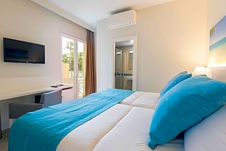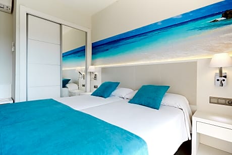 This adults-only hotel is perfectly located as you enter San Antonio, only a few yards from the sea and the bay of San Antonio. The complex offers you a location in tranquil surroundings, but at the same time closeness and easy access to the center of town, where you can enjoy the shopping and nightlife. Rooms are equipped with a terrace, boasting views of the large gardens, swimming pool and sporting facilities, all of which guarantee a relaxing stay. WiFi is available for an extra charge. There is a weekly planned entertainment program for your enjoyment. The restaurant serves lunches and themed dinners, as well as a nonstop late breakfast from 08:00 until 12:00, including hot drinks and a varied menu for a complete breakfast. San Antonio is well-known for its entertainment offering, but a must is to watch the sunset from Café del Mar, near the hotel. You can also take advantage of the water sports or boat excursions that are provided in the bay.
