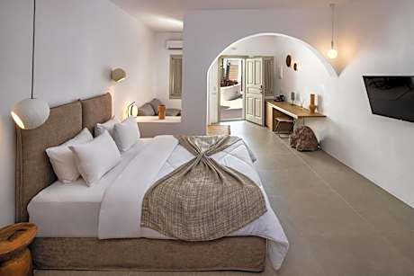 Set on the slopes of Santorini’s caldera, Ira Hotel is located in the village of Firostefani, within walking distance of Fira, the island’s capital. It features a spa center, a restaurant and a swimming pool boasting magnificent sea views. Ira offers caldera-view rooms, suites and traditional dwellings built across a courtyard with private terraces. Facilities include a flat-screen TV, a mini-bar, and air conditioning. In the bathrooms you will find free toiletries, slippers and a hairdryer. A rich breakfast is served each morning at the hotel’s breakfast room. Free WiFi is offered in the entire hotel. The property’s staff can assist you with car rentals, shuttle service and cruises around the island. At a close distance are restaurants and cafés. The bus stop, a public parking area and a mini market are also nearby.
