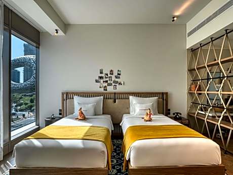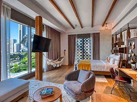 25hours Hotel One Central provides flawless service and all the necessary facilities for visitors. Maintain seamless communication using the complimentary Wi-Fi at hotel. Effortlessly arrange transportation to and from the airport using the hotel's airport transfer services.Discovering Dubai becomes even more accessible through the taxi and car hire amenities provided at the hotel. For visitors traveling by automobile, complimentary parking is available. During your stay at this fantastic hotel, the attentive front desk personnel can provide you with a range of amenities such as concierge service, express check-in or check-out, luggage storage and safety deposit boxes.In search of city's top entertainment, seek assistance at the hotel's ticket service and tours for reservations.At the hotel, utilize the on-site dry cleaning service and laundry service to maintain your beloved travel attire fresh, allowing you to bring fewer clothes. Craving relaxation? Make the most of your stay at the 25hours Hotel One Central with convenient amenities like 24-hour room service, room service and daily housekeeping at your disposal. For visitors wishing to smoke, designated smoking zones can be found. At 25hours Hotel One Central, every guestroom is provided with convenient amenities and fittings to ensure a comfortable stay. Elevate your experience at hotel with the knowledge that certain rooms are equipped with linen service, ensuring a more pleasant stay for you. Certain rooms offer in-room amusement features such as the television for your enjoyment.In select rooms at the hotel, mini bar is available for those moments when it seems necessary.In the hotel, certain guest bathrooms come equipped with essential bathroom amenities, such as a hair dryer, toiletries and bathrobes, ensuring a comfortable stay for guests. Begin your day with a scrumptious on-site breakfast available each morning at 25hours Hotel One Central. Begin your day feeling refreshed and invigorated as you enjoy a delightful cup of quality coffee available at the cafe situated within the hotel. At the hotel, an assortment of easily accessible and delicious meal choices are available to satisfy your appetite whenever it strikes.At 25hours Hotel One Central, they are committed to catering to your unique requirements. They offer a variety of meal choices, encompassing halal alternatives for those with special dietary preferences.Enjoy an entertaining evening with your fellow travelers at the hotel's bar. At 25hours Hotel One Central, guests can take pleasure in the delightful recreational amenities provided for their entertainment. Conclude your holiday perfectly with a visit to massage, salon, solarium, steam room, spa and sauna on your final days.Be sure to drop by the pool at hotel at least once during your stay. At 25hours Hotel One Central, utmost care is taken to ensure guests' comfort. Relish your preferred beverage in your swimwear by the hotel's poolside bar.Discover the fitness amenities at hotel to maintain your health and strength during your getaway. License Number(s): 7926540