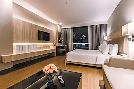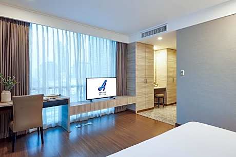 At Adelphi Suites Bangkok, exceptional service and top-notch amenities create a memorable experience for guests. Remain linked during your visit by utilizing the complimentary internet access available.Prior to your check-in date, you can arrange airport transportation services, guaranteeing a seamless and efficient experience for both arrival and departure. Experience the wonders of Bangkok with ease by utilizing the services provided at taxi.Parking is accessible, supplied by the hotel for guests who arrive by car. Effortlessly plan your daily activities and travel requirements with concierge service, luggage storage and safety deposit boxes provided by the front desk services.For extended visits or whenever required, the dry cleaning service and laundry service ensures your preferred travel garments remain clean and accessible.During leisurely days and evenings, in-room amenities such as room service and daily housekeeping enable you to maximize your stay in the room. The hotel is completely smoke-free.In limited designated zones, smoking is exclusively permitted. Crafted for coziness, every guestroom provides an array of features, guaranteeing a tranquil night's sleep while maintaining the level of comfort. For a more enjoyable stay, select rooms at hotel are equipped with linen service, blackout curtains and air conditioning.For certain chosen rooms, guests can enjoy in-room amusement like television and cable TV as a part of their stay. Rest assured that your hydration needs will be met, as some guestrooms are equipped with a refrigerator, bottled water, a coffee or tea maker, instant coffee, instant tea and mini bar.It is worth noting that certain guest bathrooms feature a hair dryer, toiletries and bathrobes for your convenience. Begin your holiday mornings right with your essential cup of coffee, offered daily at the cafe on-site.During your visit, indulge in a range of delightful culinary choices at hotel to enhance your experience. Experience a fantastic evening effortlessly! Relish an entertaining night without venturing beyond the confines of the bar. During your stay at hotel, an array of engaging activities and amenities guarantees a delightful experience.Begin your holiday perfectly by taking a plunge into the swimming pool.Eliminate those holiday calories by stopping by hotel and making use of their well-equipped exercise amenities.