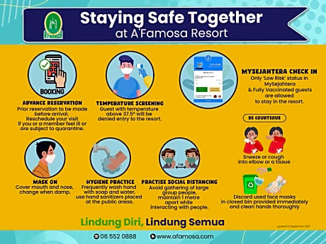 A'Famosa Resort provides flawless service and all the necessary facilities for visitors.Maintain seamless communication using the complimentary Wi-Fi at resort. Effortlessly arrange transportation to and from the airport using the resort's airport transfer services.Discovering Malacca becomes even more accessible, thanks to the shuttle amenities provided at the resort.For visitors traveling by automobile, complimentary parking is available. During your stay at this fantastic resort, the attentive front desk personnel can provide you with a range of amenities such as concierge service, luggage storage and safety deposit boxes.In search of city's top entertainment, seek assistance at the resort's ticket service and tours for reservations. At the resort, utilize the on-site dry cleaning service and laundry service to maintain your beloved travel attire fresh, allowing you to bring fewer clothes. Craving relaxation? Make the most of your stay at the A'Famosa Resort with convenient amenities like 24-hour room service, room service and daily housekeeping at your disposal. For all your minor, last-minute requirements, the convenience stores can promptly cater to them, eliminating the need to venture out. For visitors wishing to smoke, designated smoking zones can be found.At A'Famosa Resort, every guestroom is provided with convenient amenities and fittings to ensure a comfortable stay.Enhance your experience at resort with the knowledge that certain rooms are equipped with blackout curtains and air conditioning for your convenience. At A'Famosa Resort, each visit offers an array of intriguing room configurations, featuring accommodations with separate living room and balcony or terrace, ensuring a distinct experience every time. Certain rooms boast in-room amusement features such as daily newspaper, television and cable TV, offering guests an enjoyable stay.In select rooms within the resort, a refrigerator, bottled water, a coffee or tea maker, instant coffee, instant tea and mini bar is available to cater to your requirements when desired.In the resort, certain guest bathrooms come equipped with essential bathroom amenities, such as a hair dryer and toiletries, ensuring a comfortable stay for guests. Begin your day with a scrumptious on-site breakfast available each morning at A'Famosa Resort. Begin your day feeling refreshed and invigorated as you enjoy a delightful cup of quality coffee available at the cafe situated within the resort. At the resort, an assortment of easily accessible and delicious meal choices are available to satisfy your appetite whenever it strikes.At A'Famosa Resort, they are committed to catering to your unique requirements. They offer a variety of meal choices, encompassing halal alternatives for those with special dietary preferences. Enjoy an entertaining evening with your fellow travelers at the resort's bar. At the resort, discerning guests can also enjoy on-site culinary facilities like BBQ facilities tailored to their preferences.At A'Famosa Resort, guests can take pleasure in the delightful recreational amenities provided for their entertainment. Be sure to drop by the pool at resort at least once during your stay.